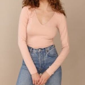 Reformation Erika V Neck Long Sleeve Slim Fit Tee Top Available in Medium & Large