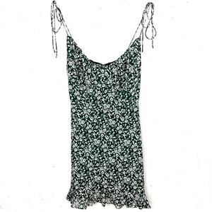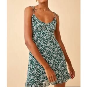 Reformation Esther Green Floral Mini Dress Ruffle Scoop Neck Adjustable Straps