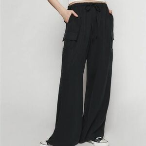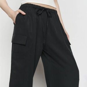 Reformation Ethan Twill Cargo Drawstring Pull On Pockets Pants Trousers Black