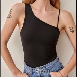 Reformation Evans Black Ribbed Asymmetrical Tank Top Size XS