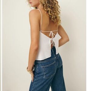 Fable Linen Top from Reformation, a sleeveless top with a high square neckline and open back with tie detailing. Never worn, new with tags.