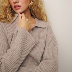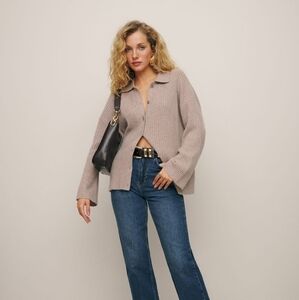 Reformation Fantino Cashmere Collared Cardigan in Oatmeal size S NWT