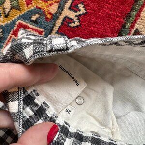 Reformation Fawcett High Waist Cropped Wide Leg Gingham Black White Jeans