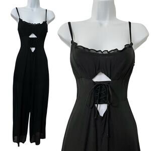 Reformation Fergie Front Lace Up Cutout Wide Leg Jumpsuit Size 4 Black Feminine