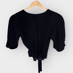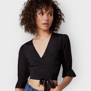 Reformation Finley XS Black Ruffle Wrap Top Cropped V-Neck Feminine French Girl
