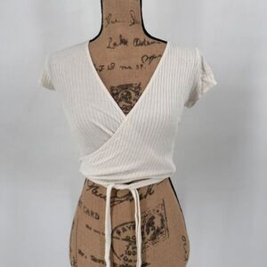 Reformation Flora Ribbed Wrap Top Ivory Size XS Knit Balletcore Cropped