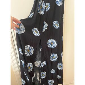 Gorgeous long maxi dress. Strappy, with an open, low back. Slit up the front center. Gently worn a handful of times, but in great condition. Navy, with large floral pattern.