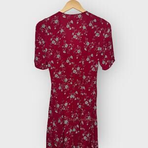 Reformation Floral Mini Dress Fit & Flare Ruched Detail Sleeve Button Down Red 2