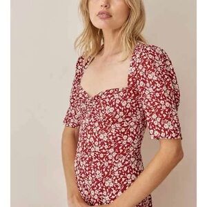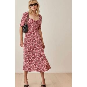 Chic and stylish floral red midi dress perfect for any occasion. Features a flattering fit and elegant design.