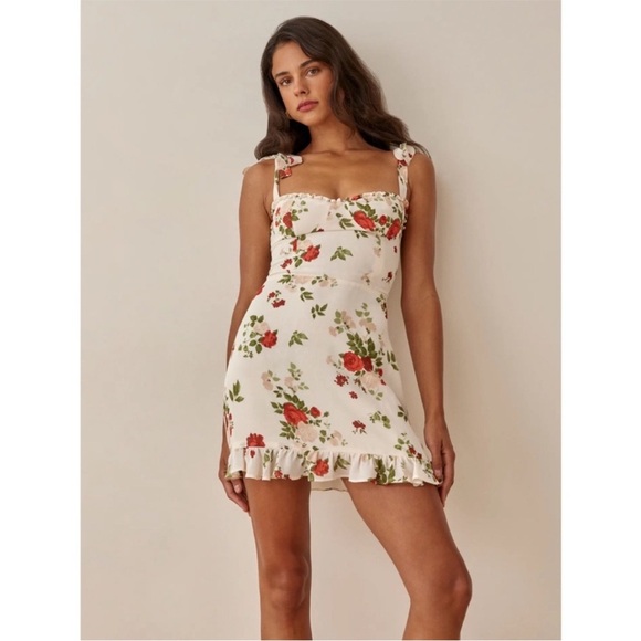 Reformation Floral Tie-Strap Dress in Cream Christine Rose