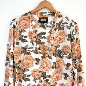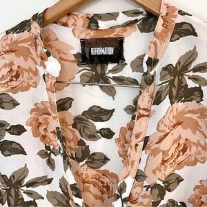 Reformation Floral Top V Neck Sz S Romantic Peach Rose Print Long Sleeve Flowy