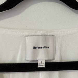 Reformation dress, Francisca mini dress, white sleeveless dress, organic cotton mini, V-neck dress, front pocket dress, sustainable fashion, eco-friendly clothing, casual summer dress, sold out dress, lightweight mini dress, breathable cotton dress, layering piece, beach outfit, brunch outfit, summer wardrobe staple