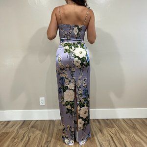 Elegant floral maxi dress by Reformation. Features a lavender base with green floral patterns. Perfect for any occasion. Never been worn- I ended up ordering in a bigger size to wear as a bridesmaid dress.