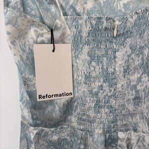 New with tags, never worn!! Frankie Silk Dress from Reformation, size 8 in Idyllic blue.