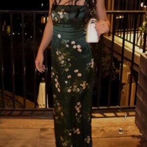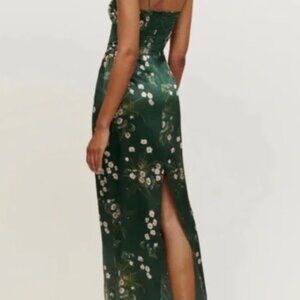 Reformation Frankie Silk Slip Maxi Green Floral Dress Buena - Size 0