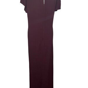 Brand new with tags. The Frasier Dress by Reformation in deep burgundy prune. Features side ruching with covered button accents, a chic front slit, and midi length. Flattering silhouette for both special events and evening wear.