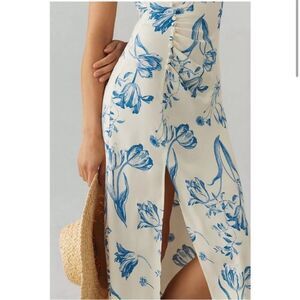 Reformation Frasier Short Sleeve Midi Dress in Lisse White Blue NEW $248