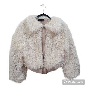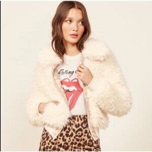 Reformation Freddie Faux Fur Jacket Cream Cozy Zip Up Coat Size XS