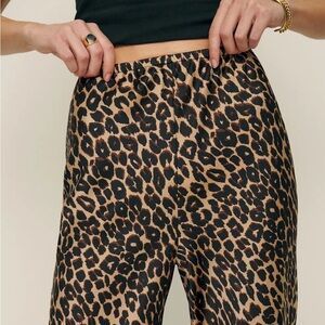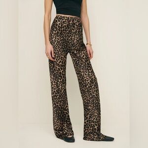 Reformation Gale Satin Silk Mid Rise Bias Wide Leg Pants Leo Leopard Cheetah