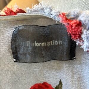 Add a fresh, flirty touch to your wardrobe with this Reformation wrap mini dress in a soft periwinkle blue, adorned with a bold red floral print. Designed in a flattering wrap silhouette with a deep V-neckline and delicate ruffle trim, this dress is perfect for warm-weather outings, brunch dates, or garden parties. Lightweight and breathable, it features cap sleeves and a self-tie waist that enhances your shape. Size small and in excellent used condition (EUC), this pre-owned beauty combines sustainable fashion with timeless style. A must-have for fans of feminine, eco-conscious clothing.