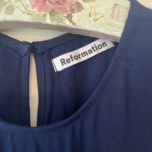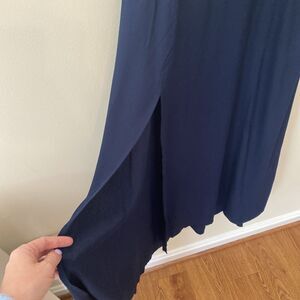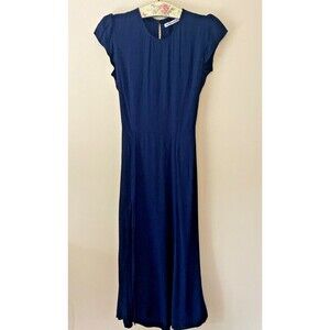 Reformation Gavin Cap Sleeve High Slit Chiffon Midi Dress in Navy Blue Size 8