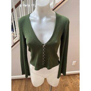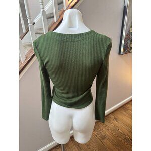 Reformation Gellar Knit Bell Sleeve Top Sweater Fern Green Size Small