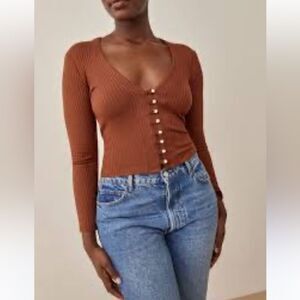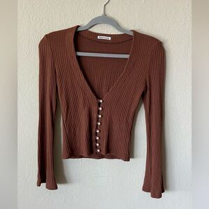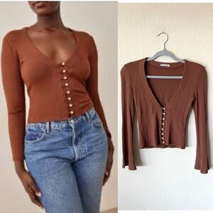 Reformation Gellar Knit Brown Crop Top Button Down Cardigan Size Xs
