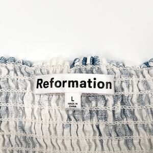 Reformation Gitane Linen Midi Dress Blue White Floral Print Corsica Size L