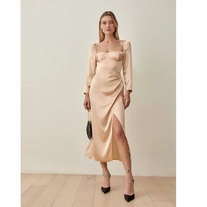 Reformation Gloriana Silk Dress Champagne Long Prom Satin size 10. Worn once