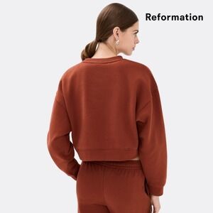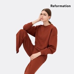 Brand new with tags, the Reformation Grace Crop Vintage Oversize Crew Neck Sweatshirt in the rich Fig Jam color offers effortless style and comfort. Designed with a relaxed, oversized fit and cropped length, this sweatshirt features a classic crew neckline with vintage-inspired stitching details. Perfect for pairing with high-waisted jeans, skirts, or matching sweatpants.