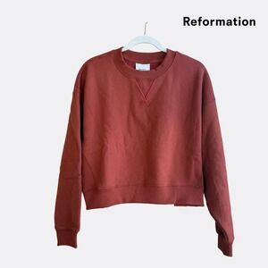Reformation Grace Crop Vintage Oversize Crew Neck Sweatshirt – Fig Jam – Size M