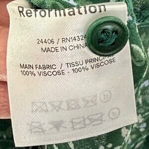 Reformation Green Button Ditsy Floral Long Sleeve Sheer S Top Preppy MSRP $148