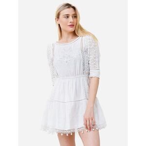 This Reformation sundress in a refreshing green hue is perfect for both casual outings and work settings. Featuring a classic crew neck and cap sleeves, it offers a comfortable fit with a slightly fitted waist and a flowing A-line skirt. The midi length and buttoned style add a touch of elegance to its casual charm.