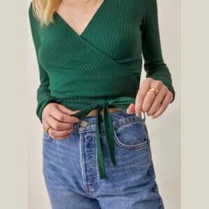 Reformation Green Petalo Wrap Crop Top Size Medium