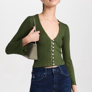 Reformation Green Ribbed Cardigan