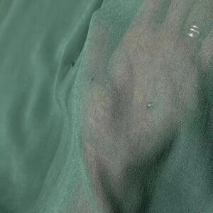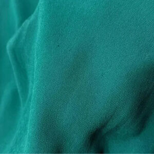 Elegant green dress with ruffle details. Features a deep V-neck and tie front. Perfect for any occasion.