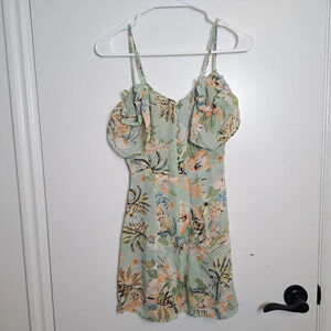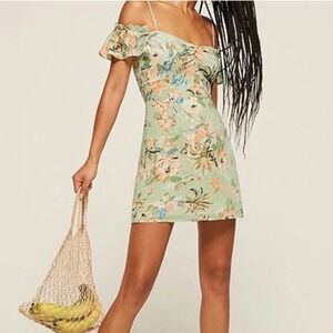 Reformation Green Tropical Floral Chiffon Off The Shoulder Mini Dress Size 2