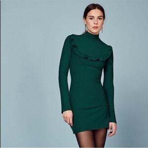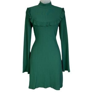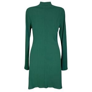 Reformation Greer Mock Neck Ribbed Long Sleeve Mini Dress in Green Women's Large