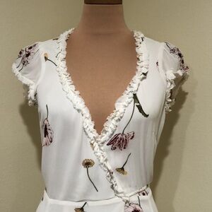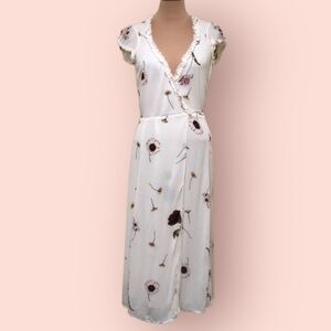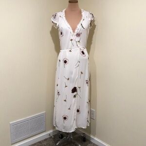 Reformation Gwenyth Midi Wrap Dress Size XS Ruffle White Floral Gardenia Print