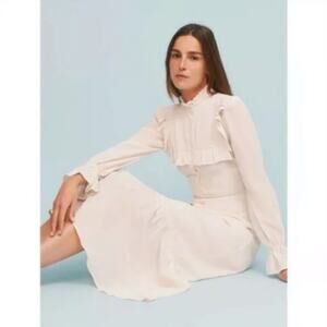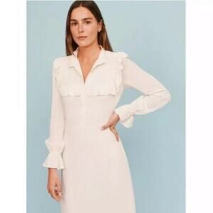 Reformation Hallie Victorian Ruffle Floral High Neck Dress in Cream Size 4