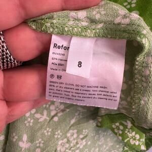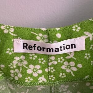 Reformation Halsten Slip Dress Green Scoop Neck Floral Side Slit Strap Sz 8