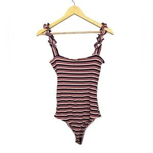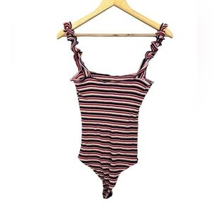 Reformation Hampton Bodysuit Stretchy ribbed fabric Ruffle straps Great condition Square neckline Excellent Preowned Condition (Fabric tag falling off)