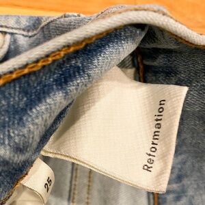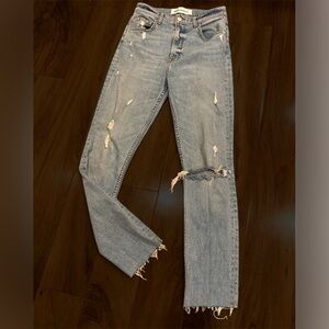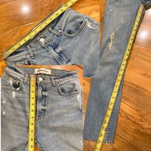 Reformation Harper High Rise Skinny Blue Jeans Raw Hem Distressed Maui USA 25