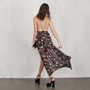 Gently used Reformation wrap gown, black and pink dress.