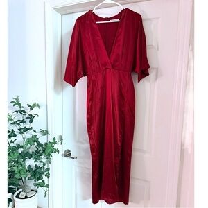 Reformation Heidi Crimson Red 100% Silk Flutter Sleeve Midi Dress Size 2 Flowy