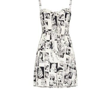 Reformation Helm Pop Art Print Mini Dress Weiss Newsprint Comic Strip