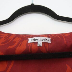 Reformation Hendrix Floral Print Silk Satin Midi Dress. Cut from glossy silk-satin that's patterned with flowers, it's cut with a square neckline and gently hugs the waist before falling to a midi length. Wear yours with pumps or strappy sandals.