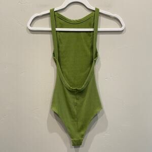 Reformation High Neck Ribbed Sleeveless Open Back Bodysuit in Green