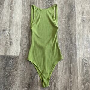 Reformation High Neck Ribbed Sleeveless Bodysuit Green - Size: XS