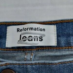Size 29 Reformation Suzie Jeans in Rhine Wash. 51% cotton 43% lyocell 4% EME 2% elastane. Zip fly and button closure. Waist 14.5" Rise 13" Inseam 29". Excellent pre-owned condition.
